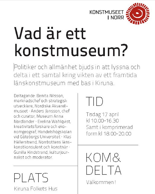 Kom och lyssna eller delta i samtalen kring detta länskonstmuseum som Kiruna så väl behöver: