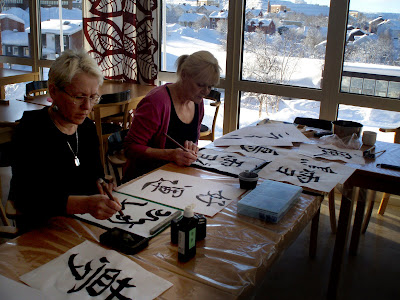 Strax efter vernissagen var det dags för Kalligrafi-performance av kalligrafiartisten Hisayo Majstrovic Oki.