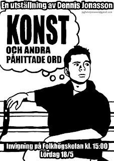 Konst och andra påhittade ord I Utställning Dela: Sveriges konstföreningar, Norrbottens ungdomsstipendiat: Dennis Johansson Malmfältens folkhögskolas foajé 30 maj – 14 juni Öppet 07.00-16.30 2 juni, 2013